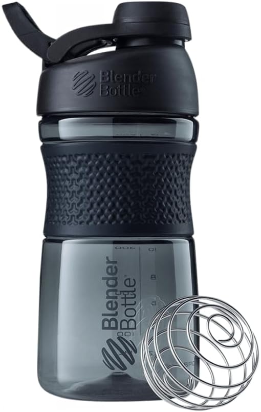 BlenderBottle SportMixer Shaker Bottle Perfect for Protein Shakes and Pre Workout, 20-Ounce, Black