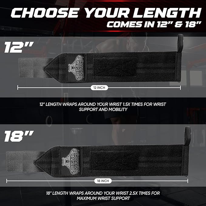 Bear Grips Wrist Wraps for Weightlifting | Weight Lifting Wrist Straps for Weightlifting | Extra Strength Gym Wrist Wraps | Two Wrist Wrap Per Pack | 12β & 18β | Lifting Wrist Wraps for Men & Women
