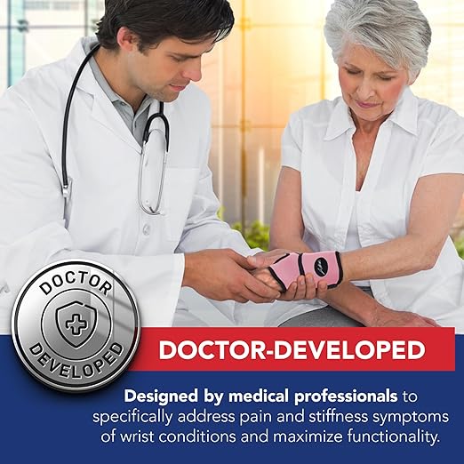 Doctor Developed Wrist Brace - Wrist wrap for Carpal Tunnel Arthritis,Tendonitis, Hand Support - Ideal for Fitness, Weightlifting - Handbook included (Pink, 1 Pack)