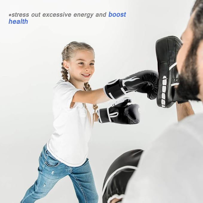 - QUALITY MATERIAL: These punching gloves used the synthetic leather that has the identical performance as adult gloves in wear-resistance and tear-resistance, added durability for punch bag training or play. The silky smooth lining is quite comfortable for kids to wear.