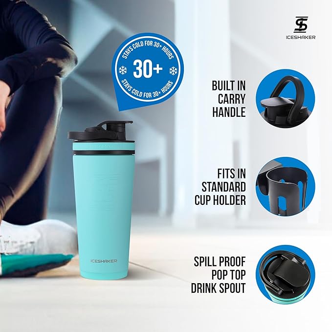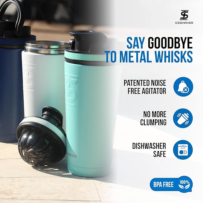 Ice Shaker Insulated Stainless Steel Shaker Bottle | 26oz, Mint | Cold for 30+ Hours | Insulated Cup with Twist-on Agitator | Odor-Free Shaker Cup for Protein Shakes, Water, Smoothies, Cocktails