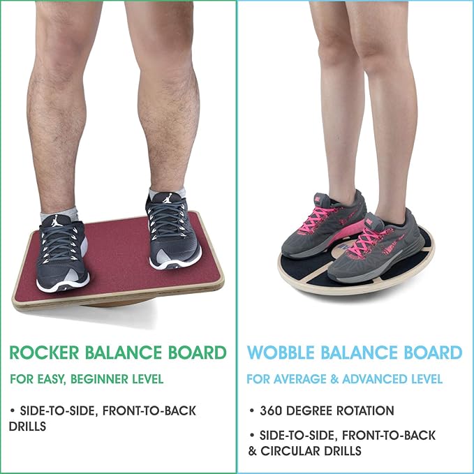 - ANTISLIP SURFACE & HIGH DURABILITY: Premium Balance Board Ankle with antiskid pad on the 17,5 inch surface provides better grip during your workout; Rocker Board is built to last, made of high quality heavy duty wood, support up to 350lbs