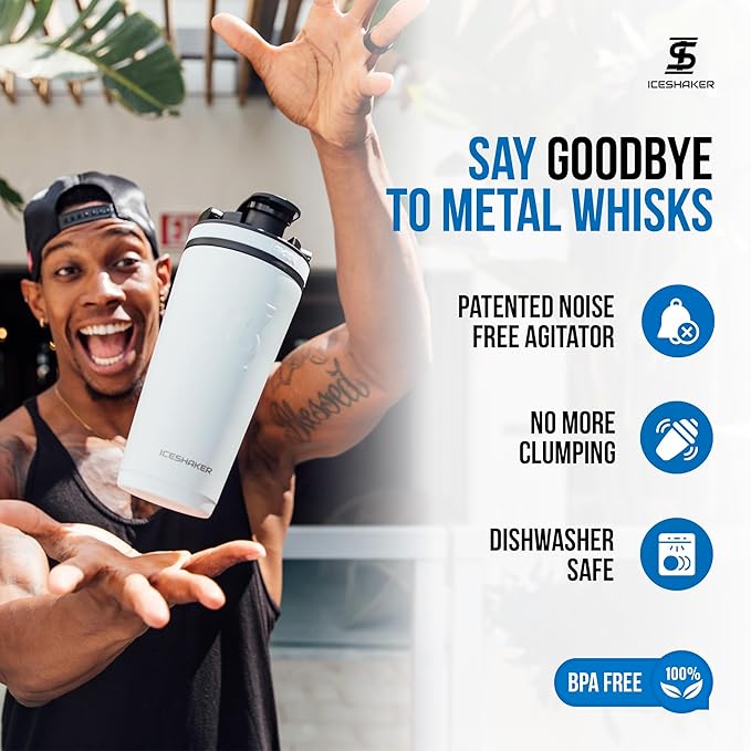 - 30+ HOURS ICE COLD — Double-wall vacuum insulation in this stainless steel protein shaker bottle keeps drinks chilled for over 30 hours, preventing condensation and maintaining temperature