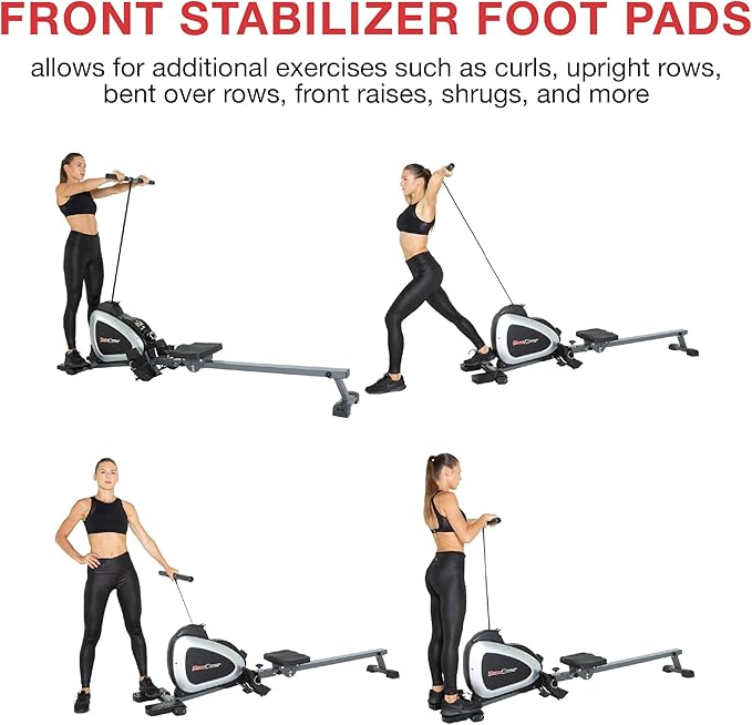 - FULL BODY FITNESS: Engage your arms, legs, and core, and increase cardiovascular health. Our row machine has a wide cushioned seat and handlebar, anti-slip pedals, and sliding rail extension for a safe workout. Recommended user height: 4’9” - 6’6”.