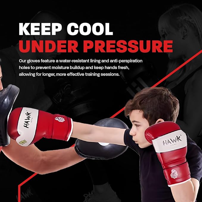 - BREATHING HOLES: These hawk kids boxing training gloves have a breathable pinhole palm that offers increased hygiene efficiency. Top quality bag gloves for kids to reduce offensive odors, moisture through children hand