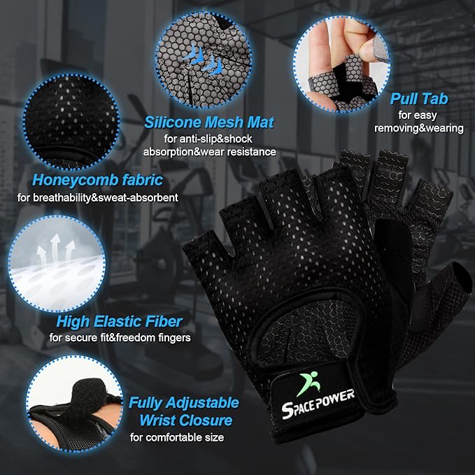 spacepower Workout Gloves - Lightweight Breathable Gym Gloves for Women & Men's Exercise