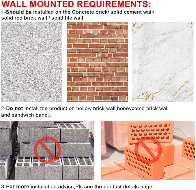 • 【Wall Mounted Requirements】 Concrete wall or brick wall is suggested for mounting this pull up bar and dip station. DON'T install on drywall, plaster walls and cavity.
