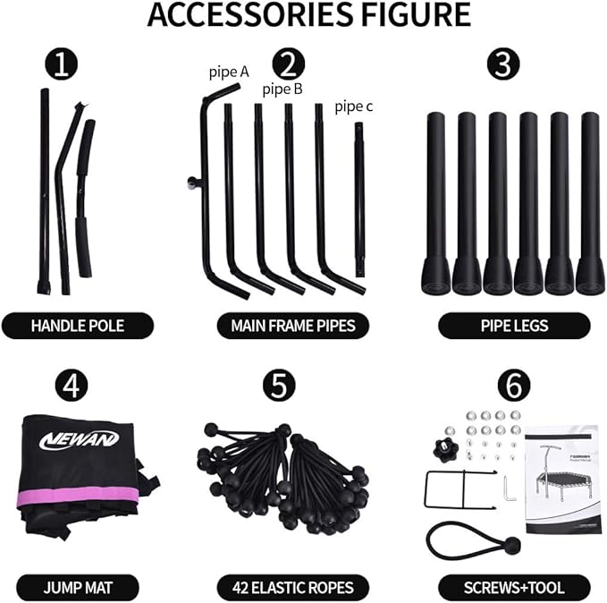 - ✅【Thickened Steel and Rubber Mat to Keep the Rebounder Stable】:Newan Adults trampoline is made of thickened steel, and designed through strict structural design. Newan Exercise trampoline has 8 legs covered with anti-slid rubber cap ,make the trampoline reduces noise in maximum extent and more stable grip for safety and non-slip and protecting the floor,Gives you the exercise you want from the comfort of your own home, so no need to trek to the gym!