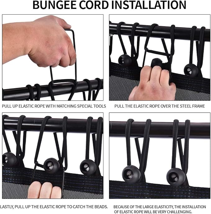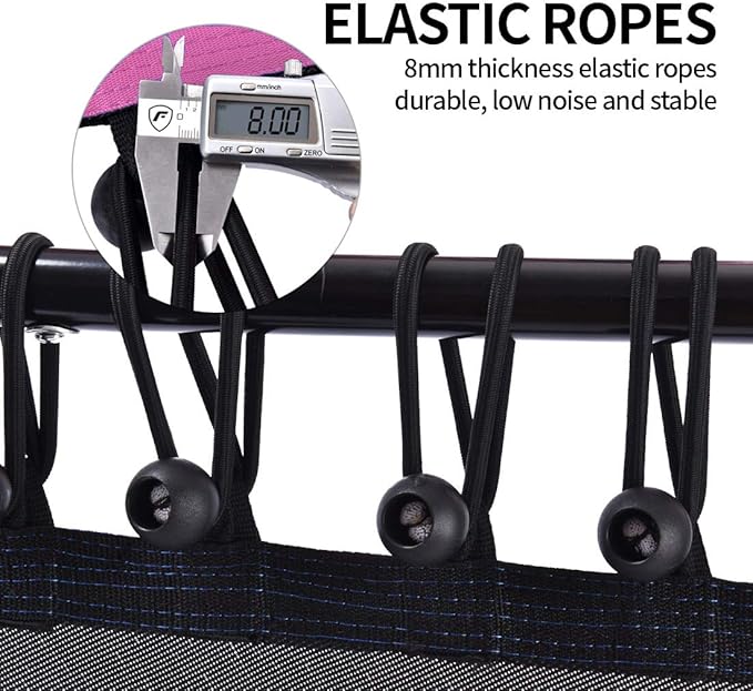 - ✅【Safer, Quieter, Soft but Strong Bounce Back】:The bungee-rope design system with 42 thickened ropes which are 0.32"(8MM) of diameter provides joint-friendly suspension, reduces noise in maximum extent, affords more stability, and gives you a great jumping experience.