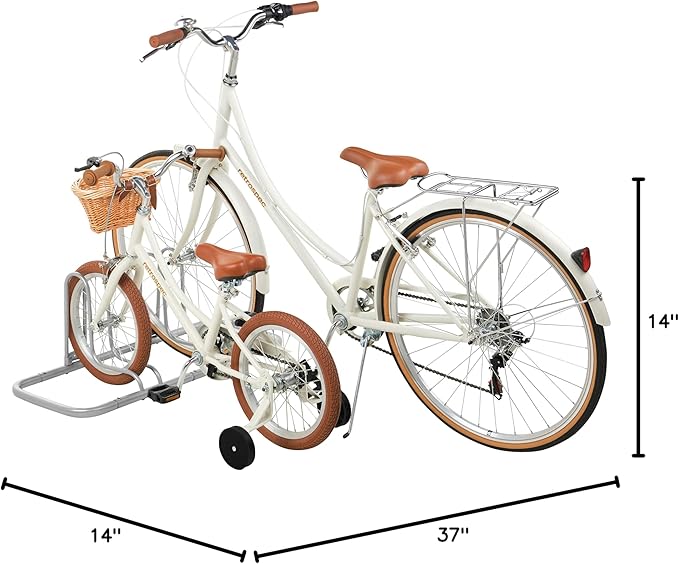 - 2 BIKE: Sturdy floor rack that is easy to assemble and holds 2 bicycles Dimensions 37''L x 14.75''W x 14''H.
