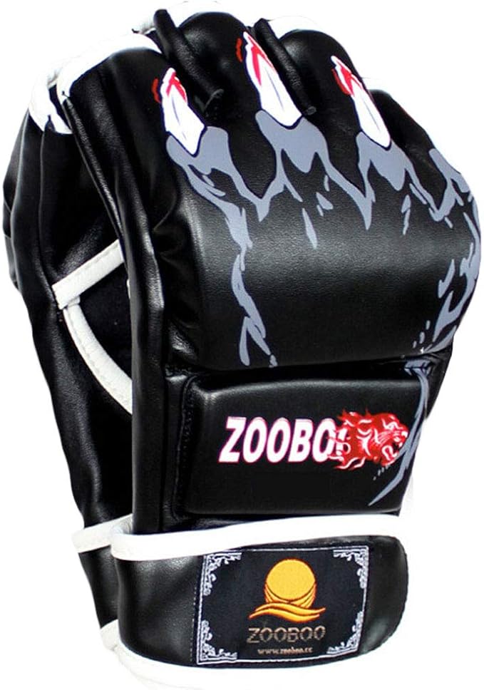 ZooBoo MMA Gloves - Half-Finger Boxing Fight Gloves Punching Gloves Mitts with Adjustable Wrist Band for Sanda Sparring Punching Bag Training (One Size Fits Most)