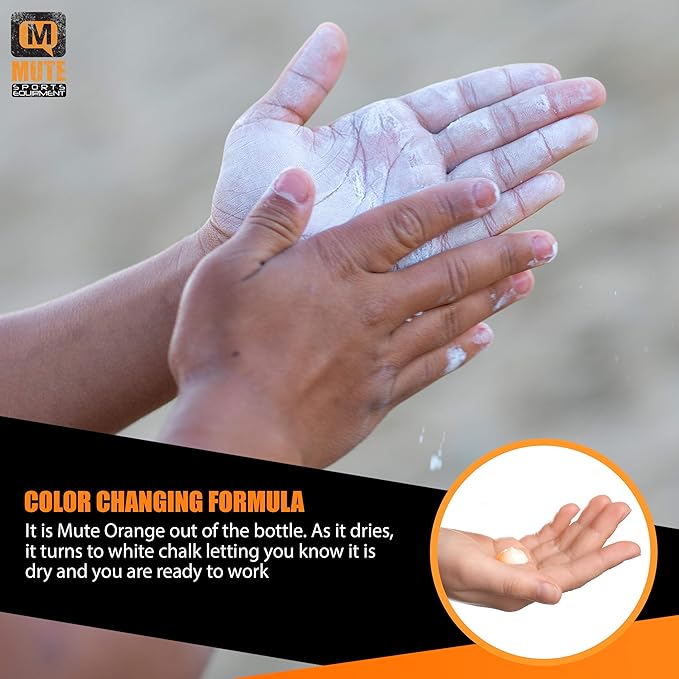 - Mute's custom blend LIQUID CHALK contains magnesium carbonate, alcohol, rosin and color.