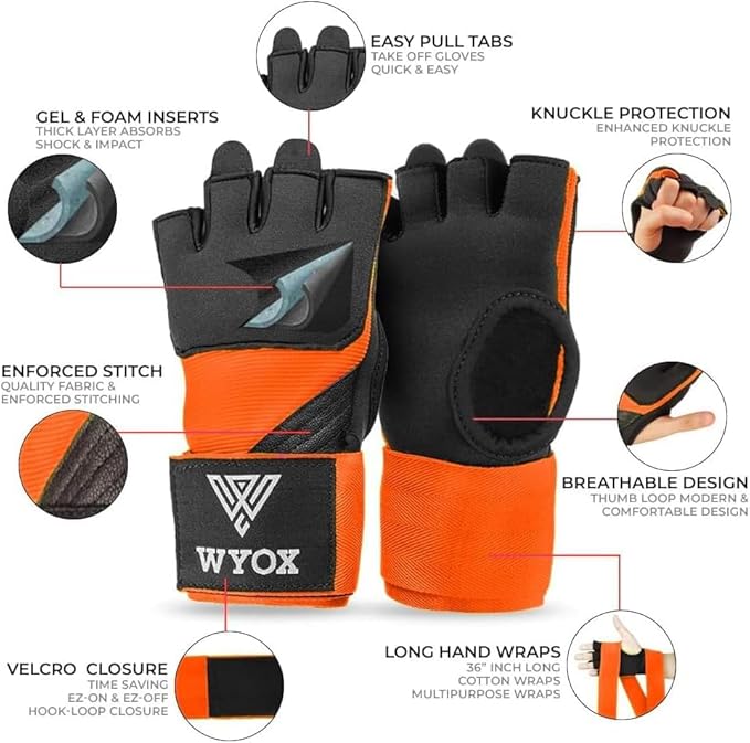 - πππππππ ππππππππππ π ππ ππππππππ πππππ Train harder with WYOX gel hand wraps for boxing glovesβdesigned with thick gel padding to absorb impact during boxing, kickboxing, Muay Thai, or MMA. These boxing inner gloves shield your knuckles while enhancing your striking force, making them perfect for both men and women.