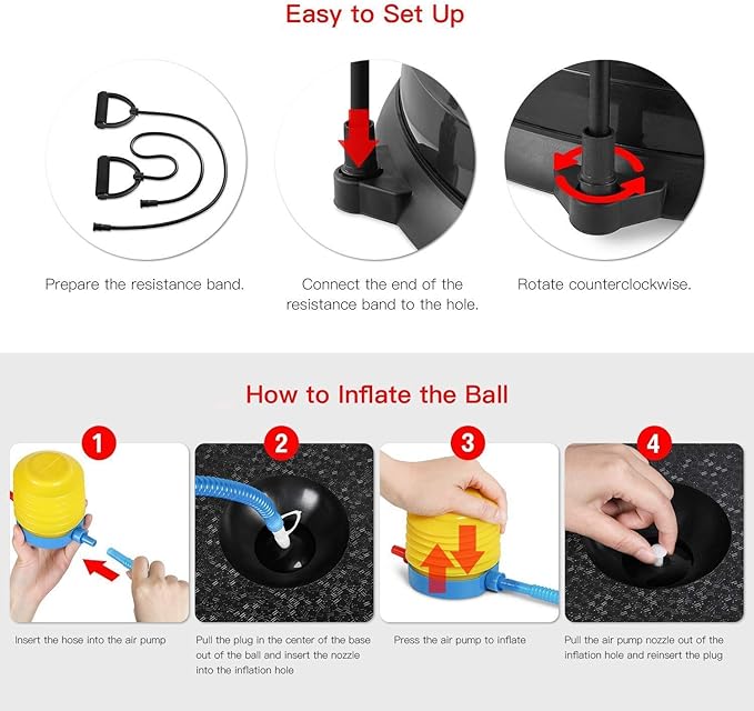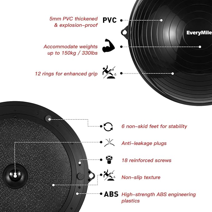 - Anti-slide & Anti-burst: 12-layer anti-skid circle surface, anti-slide base & anti-skid texture to improve users' stability. Wear-resistant ABS base plus 6 non-skid feet and anti-burst technology guarantee safety during use even when you're sweaty. 5mm thickened ball design, many tested and verified anti-burst technology guarantees a safety use