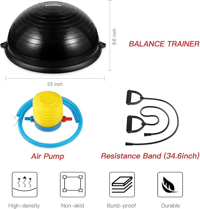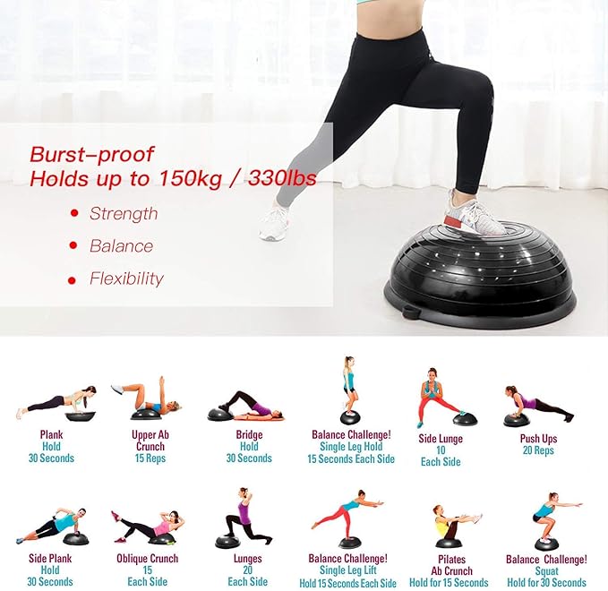 - Safe Use: This half ball is made of PVC to avoid allergy, no harm to your health, durable and very easy to clean.Equipped with pump, convenient for inflating and deflating