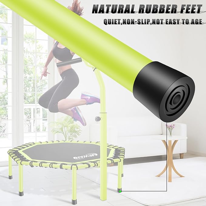 - ✅【Anti-Slip Pads,Safe and Comfortable 】:Newan 8 legs covered with anti-slid rubber cap ,make the trampoline reduces noise in maximum extent and more stable grip for safety and non-slip and protecting the floor,Gives you the exercise you want from the comfort of your own home, so no need to trek to the gym!