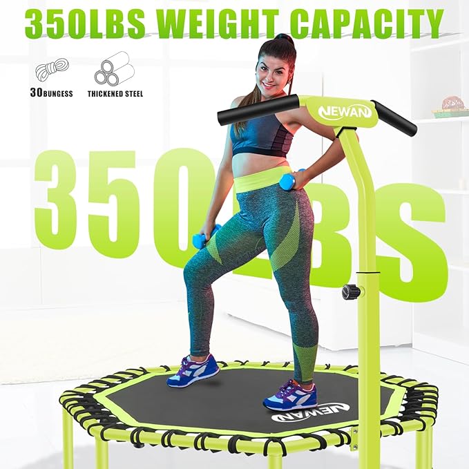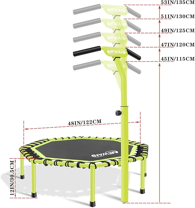 - ✅【Multifunctionen】:Newan indoor trampoline is also a perfect equipment for losing weight.10 Minutes bounce exercise equals 1-hour jogging, 30 minutes cycling or 20 minutes swimming.