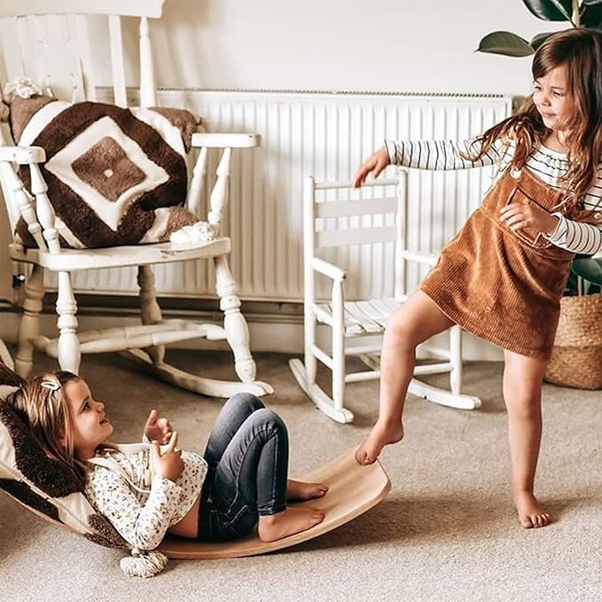 - 🌱 BOTH FOR KIDS AND ADULTS: The board is a wooden toy that grows with the child and is also very suitable for adults. To get fit, stretch your back (as a seat aid) in yoga exercises, to train balance or just because it's fun. It's possible to do a wide range of exercises on the wooden board.