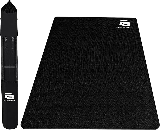 Fit Active Sports Large Exercise Mat 6' x 4' x 8mm Non-Slip Extra Wide Workout Mat for Home Gym, Cardio, Yoga, Floor Fitness, MMA, Plyo, and Jump Rope | Shoe Friendly Black