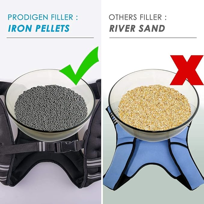 - STUFFED WITH IRON SANDS - Stuffed with chemical-free iron sands, this weighted vest is suitable for strength training, muscle building, stair climbing, weight loss, weightlifting, walking, running and more, helping improve cardio conditioning and body strength, giving you more power, speed, and agility
