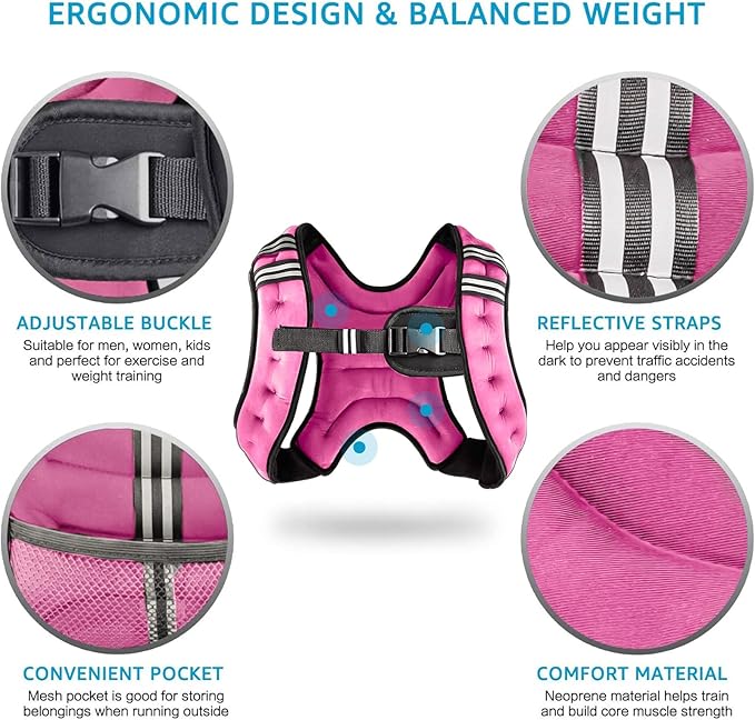 - ERGONOMIC DESIGN & BALANCED WEIGHT - This weight vest is distributed weight throughout your body, including an adjustable strap to prevent slipping and sliding during exercise (WEIGHT NOT ADJUSTABLE)