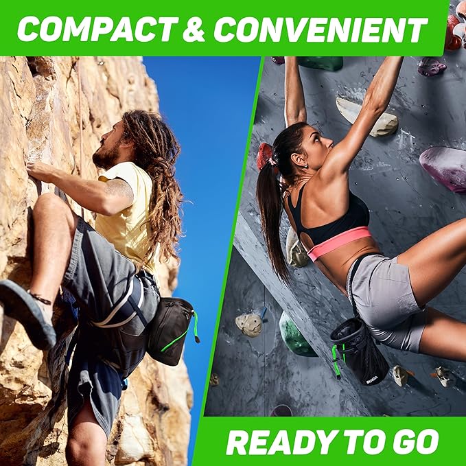 - Chalk bag for rock climbing, weight lifting, bouldering, gymnastics & CrossFit. Comes with quick-clip belt for easy wear & two loops for seamless attachment to harnesses or carabiners – convenience & performance for all your adventures.