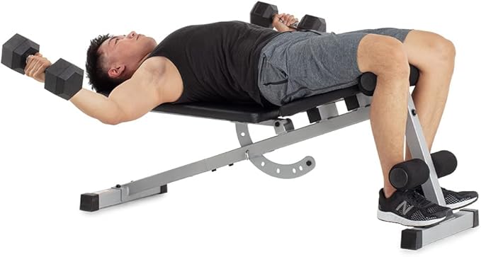 - 7 Bench Positions; Adjust this versatile slant bench between four levels of incline, flat, and decline positions to perform a variety of strength-building exercises; Tethered safety pin included