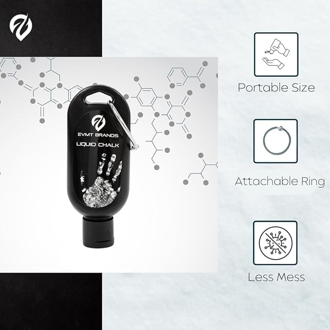 - Compact Travel-Size Liquid Hand Chalk Bottle – Skin-safe, quick-absorbing chalk for weightlifting, gymnastics, and rock climbing; made with premium ingredients to ensure long-lasting friction and palm dryness.