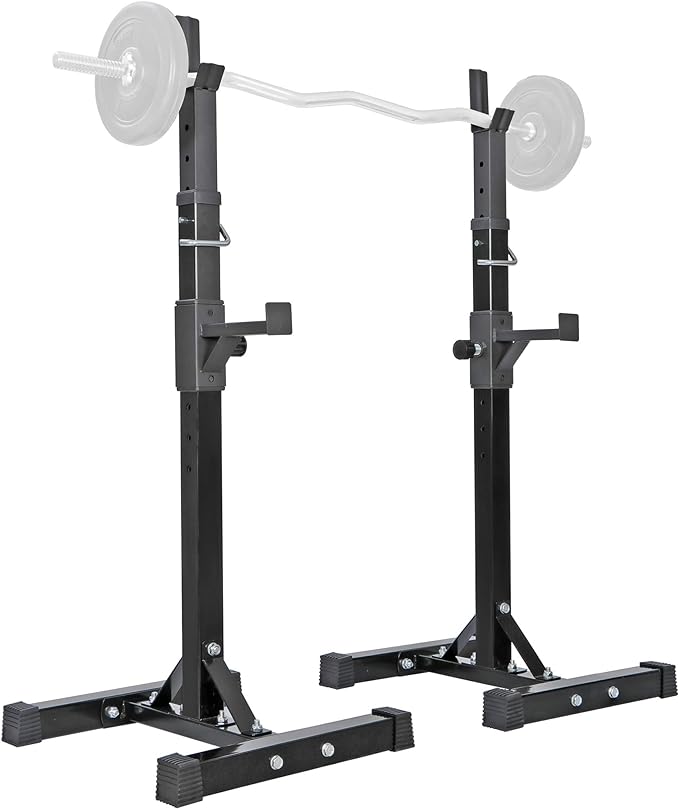 - 【Squat Stand & Dip Station】-- The specially designed non-slip rubber boots keep the squat stand in place at all times, and protect your floor from scratches. This Barbell squat stand allows you to safely perform various exercises including bench press, shoulder press, squat, dip, overhead lifts and more.