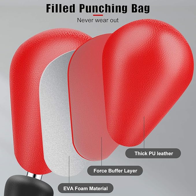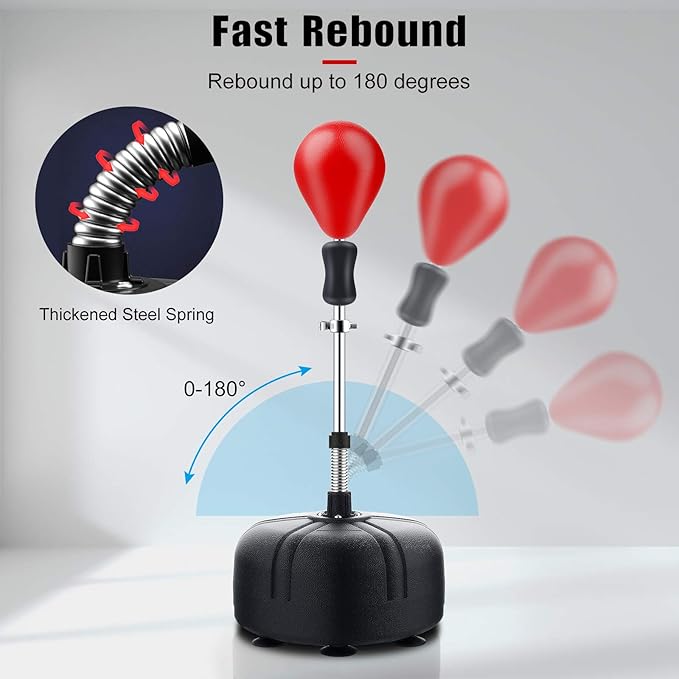 - 【A Must For Stress Relief】- This is a free standing punching ball that you should not miss. Punching ball training allows you to instantly release the pressure accumulated during your day's work and quickly relax yourself. It can not only exercise muscles but also improve attention, agility, speed and hand-eye coordination.