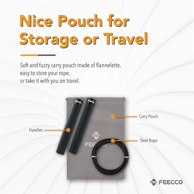 FEECCO 1/2 lb Weighted Jump Rope for Boxing, Cardio, Crossfit Workout, 8~11ft Range Adjustable Length Steel Ropes with Ball Bearings and Metal Handles, Suitable for Men and Women