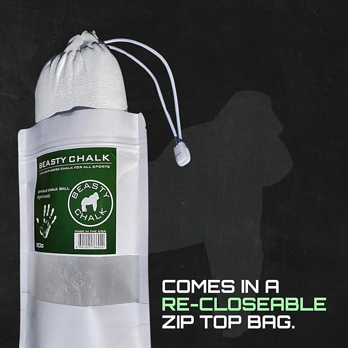 Beasty Chalk - Chalk Ball, 80 gram - Premium Gym Chalk in Refillable Sock - Non Toxic - Great for Climbing, Gymnastics, Weightlifting, Crossfit, Pool, Training