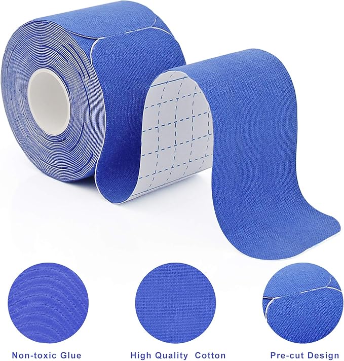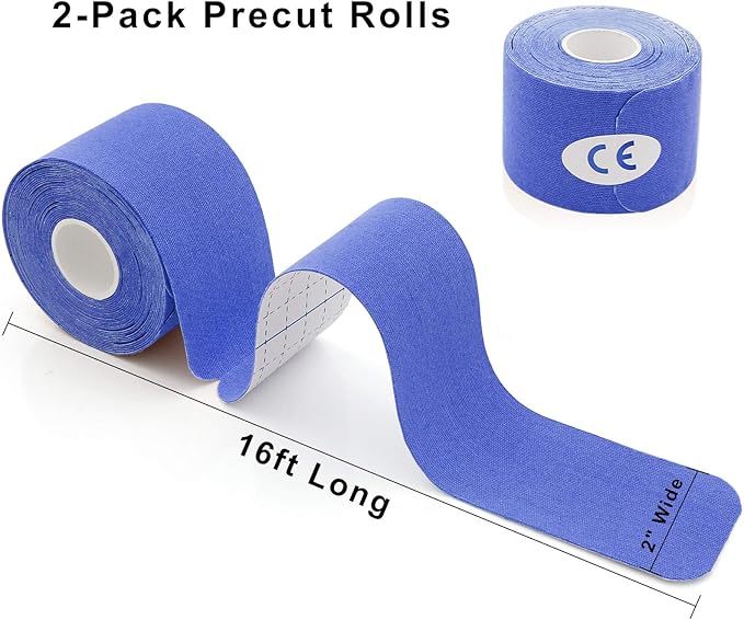 MUEUSS Kinesiology Tape Elastic Cotton Athletic Tape Precut Strips,Waterproof Tape for Protects Muscles,Knees,Shoulders Plantar Fasciitis Pain Relief,Pregnancy Belly Tape (2rolls Dark Blue&Light Blue)