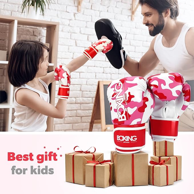 Kids Boxing Gloves, Boxing Gloves for Children 3-9 Youth Boys Girls Toddler PU Cartoon Sparring Training Boxing Gloves for Punching Bag, Kickboxing, Muay Thai, MMA
