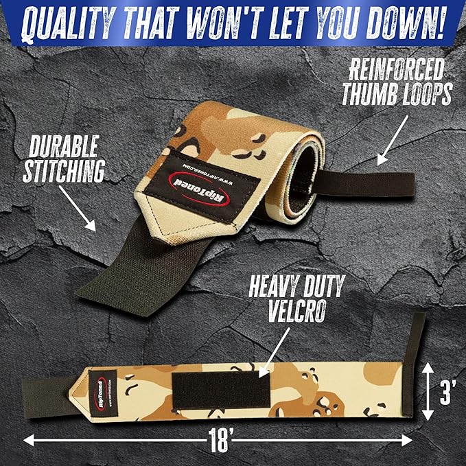 - UNMATCHED WRIST SUPPORT FOR HEAVY LIFTING – Push past your limits with Rip Toned premium 18” wrist wraps, endorsed by World Champion Powerlifter Kevin Weiss. Designed for powerlifting, bodybuilding, and weight lifting, they deliver superior stability to protect your wrists during bench press, deadlifts & overhead lifts. Rip Toned’s proprietary heavy-duty elastic blend ensures support without restricting movement. Lift with confidence and reduce the risk of hyperextension or other injuries.