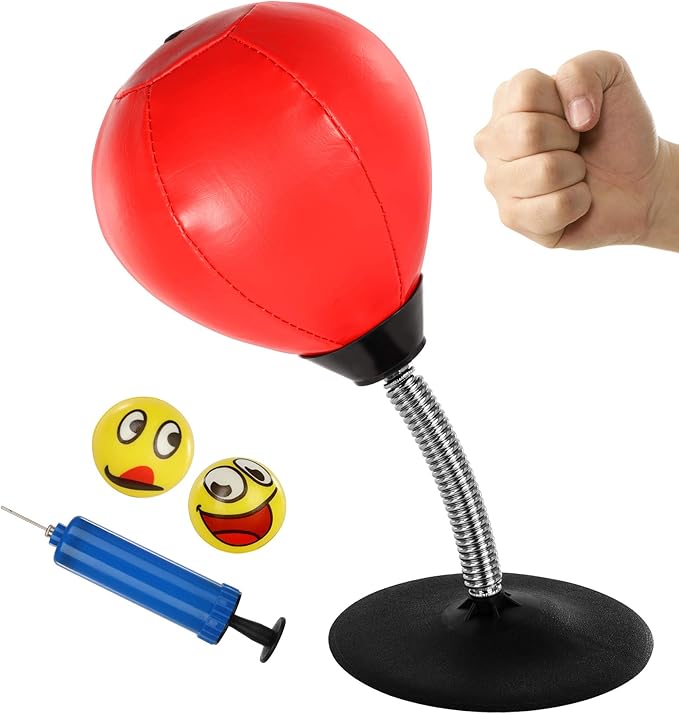 Goldboy Stress Buster - Desktop Punching Bag with Stand and 2 Extra Balls, Boxing Reflex Bag (Red)