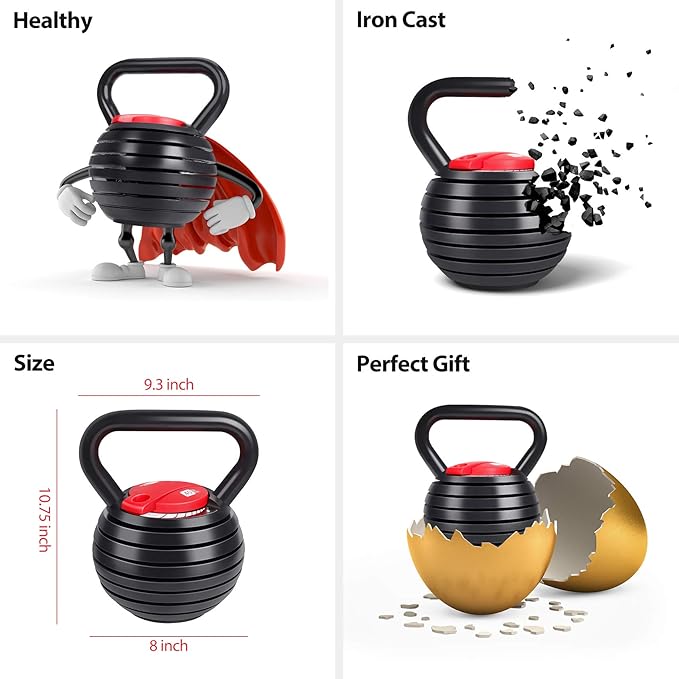 - Cast Iron Vinyl-Coated: This adjustable kettlebell is wrapped in a durable scratch-free vinyl coating to prevent corrosion, scrap hands and wreck floor; Each kettlebell lifting equipment, clearly marked with weight, ensure you do not grab the wrong bell