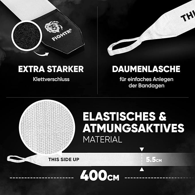 FIGHTR® Boxing Handwraps 160 inches semi-Elastic Hand Wraps with Thumb Loop for Boxing, MMA, Muay Thai & Martial Arts