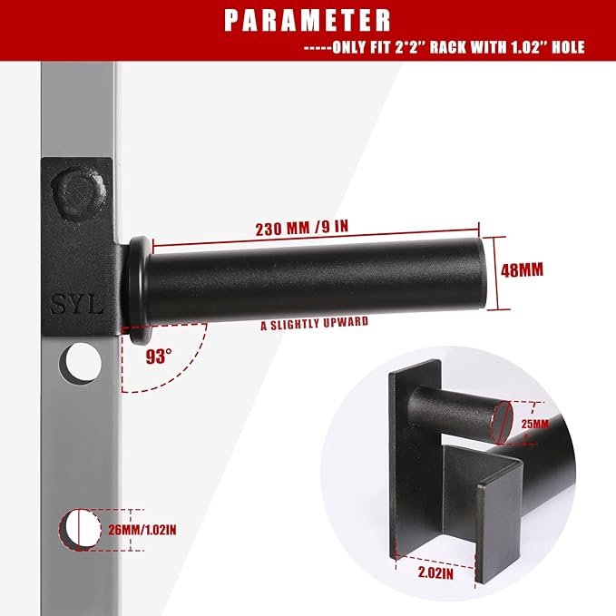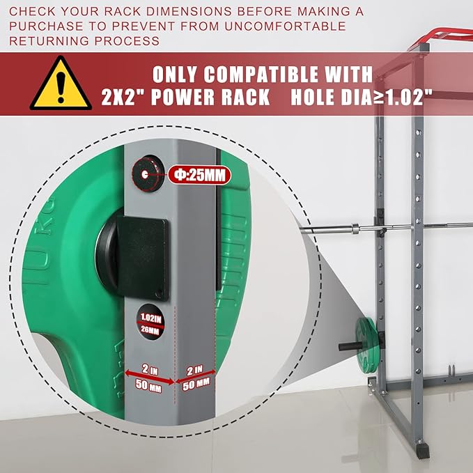 - 💪SIZE - Designed to fit 2" x 2" square tube power racks & squat racks with 1" hole & 2" diameter Olympic Weight Plates, and the sleeve length is up to 9.2"