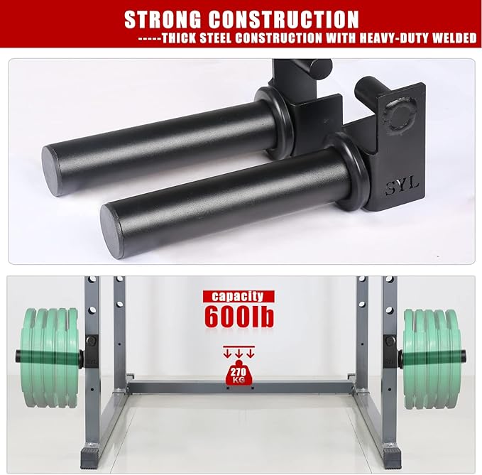 - 💪EASY TO USE - Easy to insert and lock-in design, just slide pin into power rack's hole and swing down to lock in place. This smart design makes it more convenient for loading and unloading the weight plates