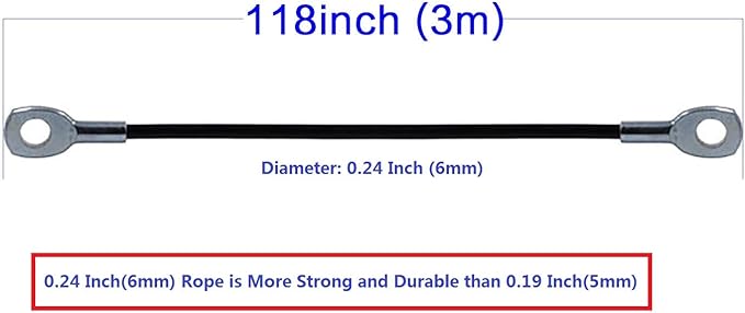 - Specification: This wire rope diameter 0.24inch/6mm including the black PU coating. It is more strong than 5mm. Made of high-strength PU materal + steel wire.