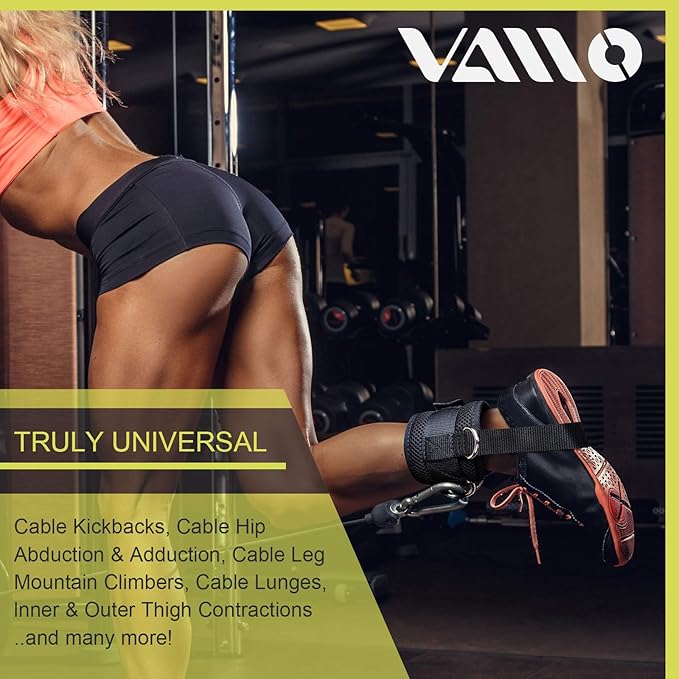 - ARTIFACT OF SPORTS BUFFS: You can get you dream legs that are as work of art with these unique ankle straps. Just wear and connect them to the cable machine, exercises for your thighs, glutes, hips, hamstrings and calves through three D-rings around the ankle. Let your legs get a full range of exercise, the leg will have more muscular and become more slim!
