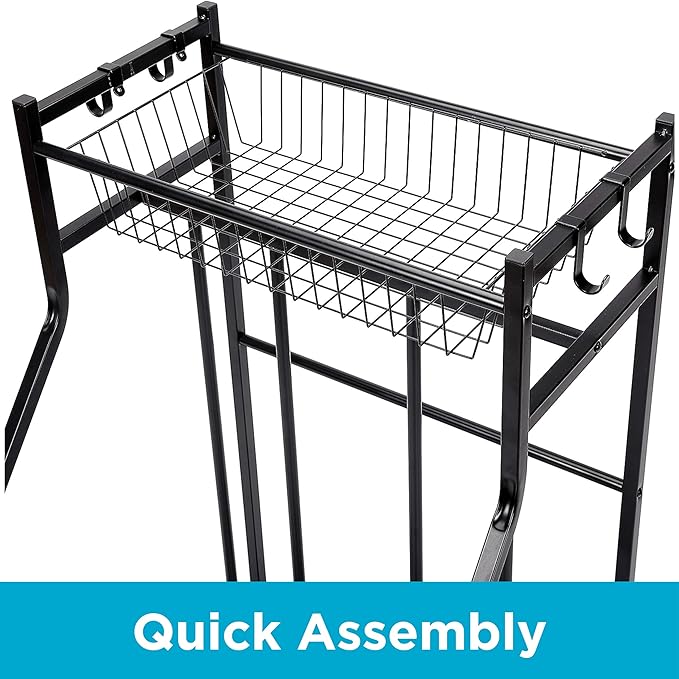- MULTI-PURPOSE ORGANIZER: Features extra-wide top basket for sports gear and adjustable hooks for helmets, rackets, and more, keeping your garage neat and tidy.