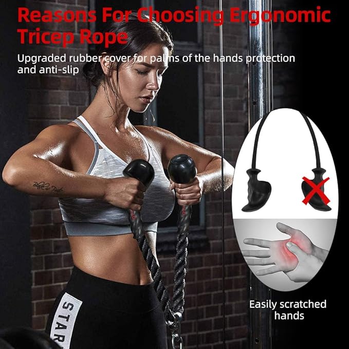 - 【💪Mulit-Usage Tricep Rope 】Ideal for home gym exercise, lat machine, ab machine, cable crossover, or any pulley system to maximize your fitness ability.