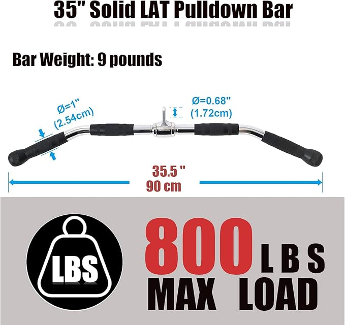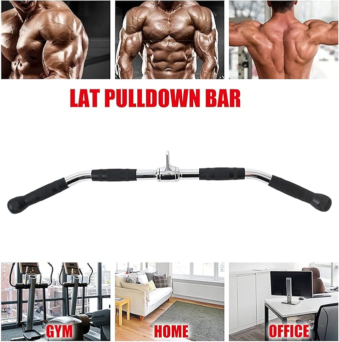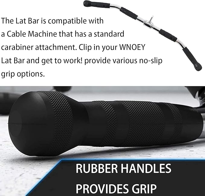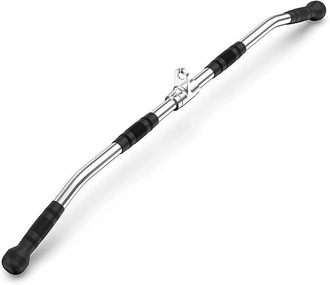 - LAT Bar Cable Attachment with Rubber Handgrips, Deluxe Heavy Duty Solid Curl Bar Revolving Hanger Home Gym Cable Attachments