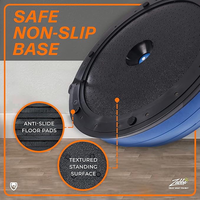 - SAFETY FIRST - Resist Humpty Dumpty-esque falls while you work out on your half ball. Our balance trainers feature a slip-resistant material, so you can stand, jump, kneel, or lay down without worry.