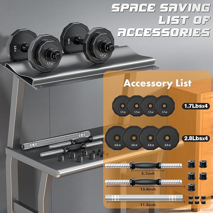 - More Adjustable Weights Dumbbells Set Options: With a wide range of weights from 5.6lbs to 22lbs, these dumbbell set can be assembled as a barbell weight set, allowing you to adjustable your weight to meet your training needs. Fitness dumbbells sets for women men.
