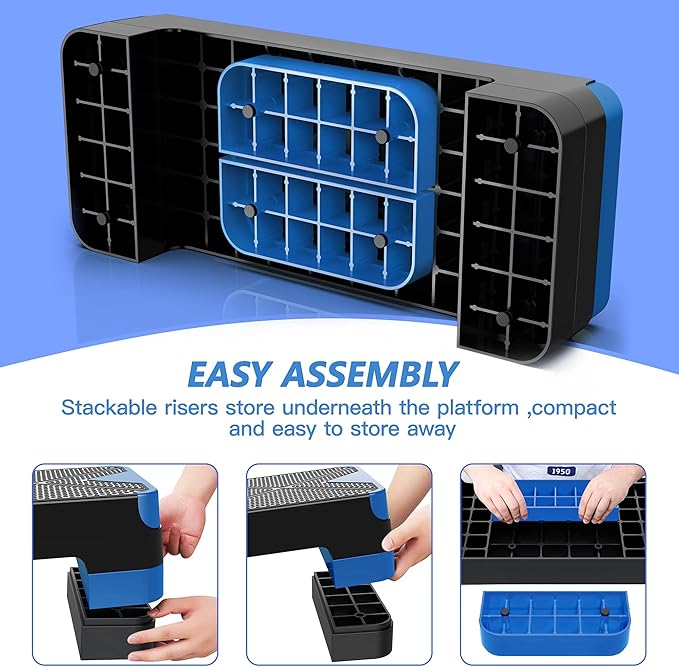 - LIGHTWEIGHT & COMPACT: GYMMAGE Step Platform is light in weight that you can carry it anywhere like office, gym, studio or outdoors. The stackable risers can be easily stored underneath the platform that you can store it under your bed, sofa or corner. Just step to a healthy life from now