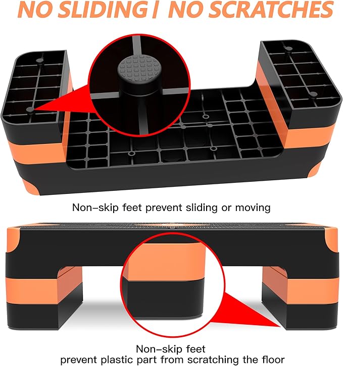 - ANTI-SLIP & NO SCRATCHES: The circular grooves and non-slip textured top of GYMMAGE Workout Stepper provide more grip and traction for exercise, prevent you from slipping/sliding. And leave you feeling safe and your movements worry free. The 4 non-slip rubber feet provide stable performance and leave no scratches.