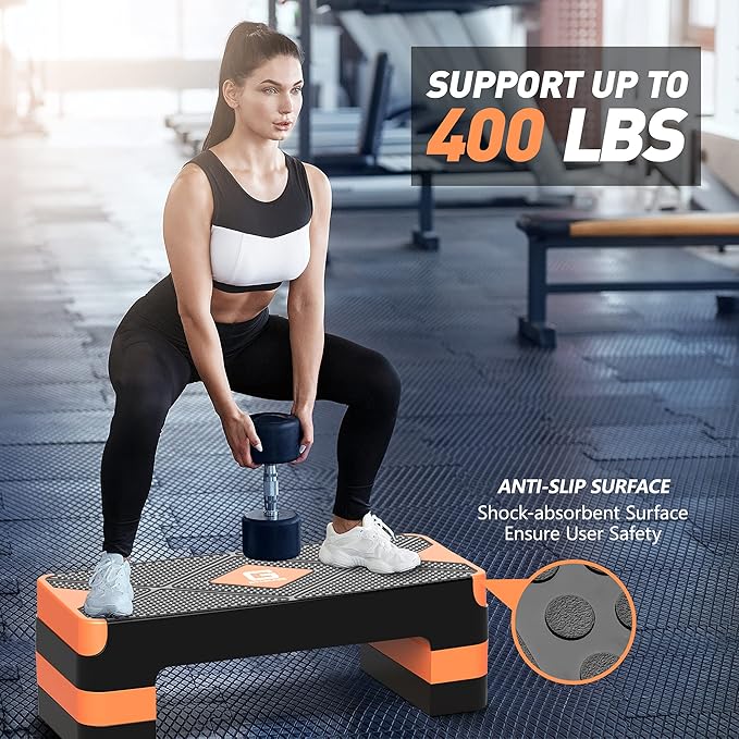 - DURABLE & QUALITY MATERIAL: GYMMAGE Step up Exercise Platform is constructed with the durable high-density ABS material, features of shock-absorbent and assure your safety of movements. The step deck is built for long-term use and strong enough to supports up to 400 lbs.